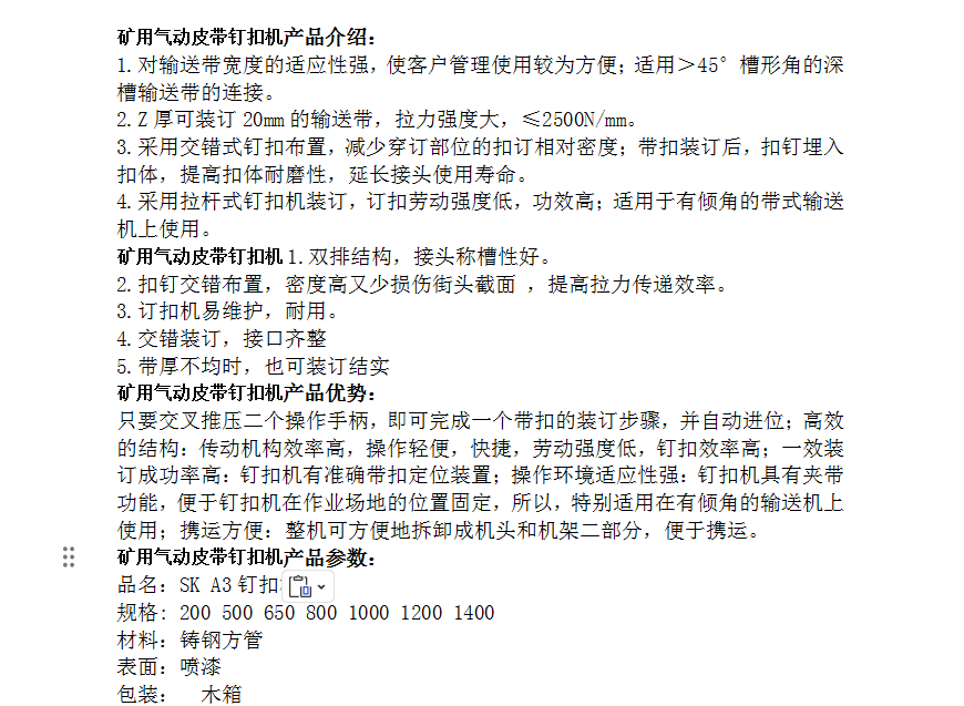 800mm手拉机械式皮带装订机 锤石钉扣器 交错式钉扣布置